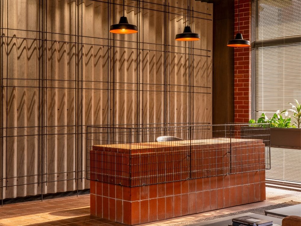 A defining feature of the accommodation is the use of exposed terracotta bricks for the façade, complemented by perforated jaalis, fly ash bricks are used for the interiors, adding warmth, familiarity, and sustainable efficiency throughout.